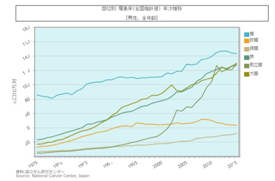 男性では大腸がんを抜いて、罹患数で第一位となりました。