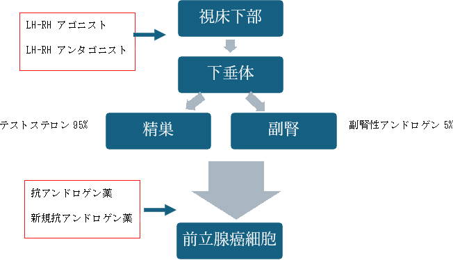 前立腺がんの栄養源は男性ホルモンなので、男性ホルモンを少なくコントロールしていこうというのが、ホルモン療法の考え方になります。